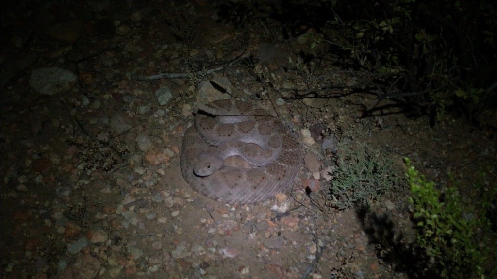 During the past few weeks I’ve spent some time doing assessments for our next major restoration project. The site is located in one of my favorite places: the Chihuahuan Desert. While camping there, the sights, smells and sounds bring a smile to my face. I know this place, its creatures, sights, and scents intimately. One night, I spotted no more than 4 feet from my tent, a coiled Western Diamondback (Atrox crotalus). It shifted a bit in place as we noticed each other. Respecting its presence, I gave the snake it’s space. It felt like seeing an old familiar face and friend. I went off in opposite direction to pee and when I returned the snake was still there, after a few moments the snake turned off and disappeared beneath a nearby acacia. The Diamondback had left a circular imprint in the earth where it was coiled, it was a sweet reminder of it presence.