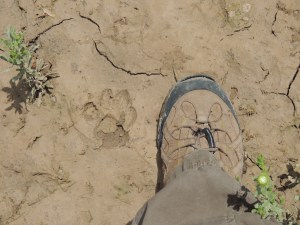 - Bobcat tracks, near an ephemeral pond, distorted in mud, IMRS – June 2013